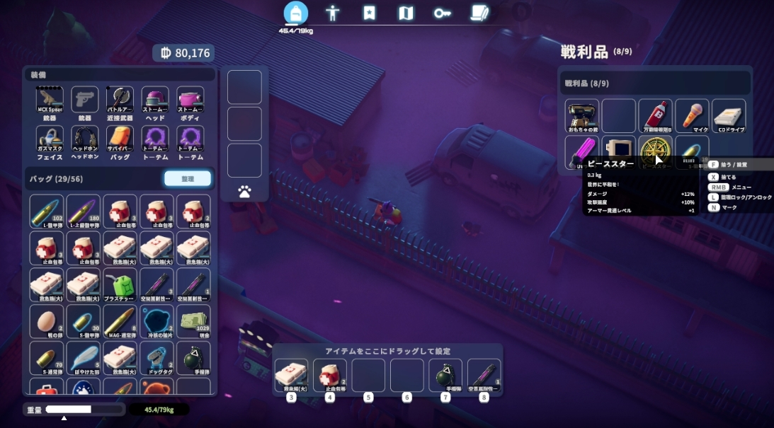 全体的にカメラが寄っていて、敵が画面に入ると感知されるためステルス行動は皆無。どの銃を持っても短・中距離で撃ち合うことが多く、Zero Sievert のように、スナイパーライフルにサプレッサーを付けて静かに制圧していくプレイスタイルができないのは惜しい。