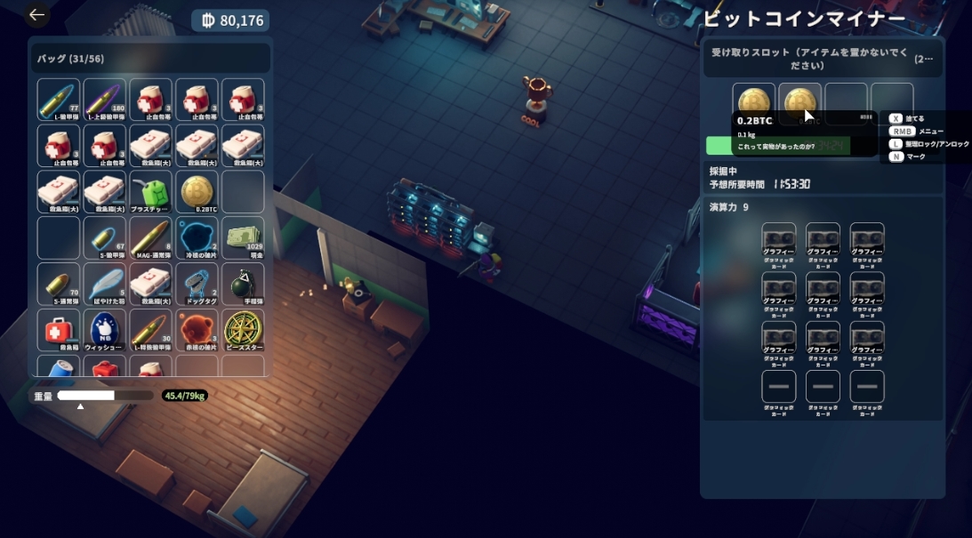 他にもゲーム機を持ち帰るとそのゲームをプレイできたり、グラフィックカードを持ち帰るとマイニングで稼ぐことができたりと拠点の発展にも思っていた以上に遊び心がある。