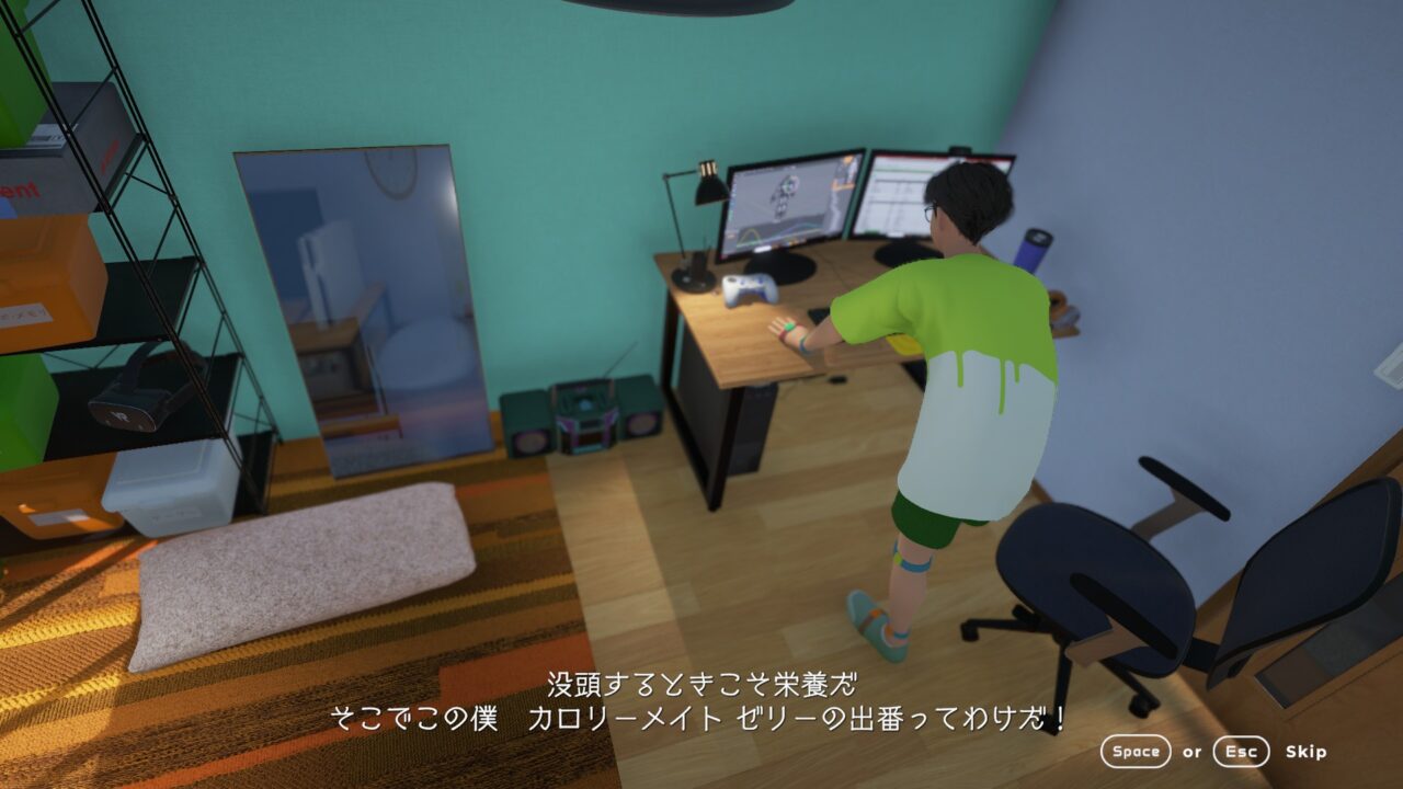 冷蔵庫から飛び出したカロリーメイトゼリーの主人公となり、忙しく働くゲームクリエイターたちに栄養を届けよう。