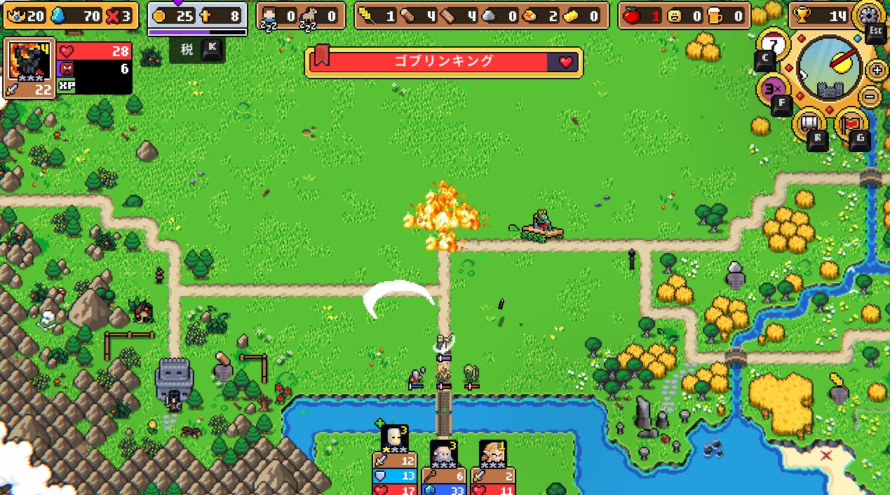 王国の北から常にモンスターが襲ってくるので街づくりをしつつ、同時に王国の防衛もこなしていく。とはいえオートバトルなのでやることはユニット配置と強化ぐらい。