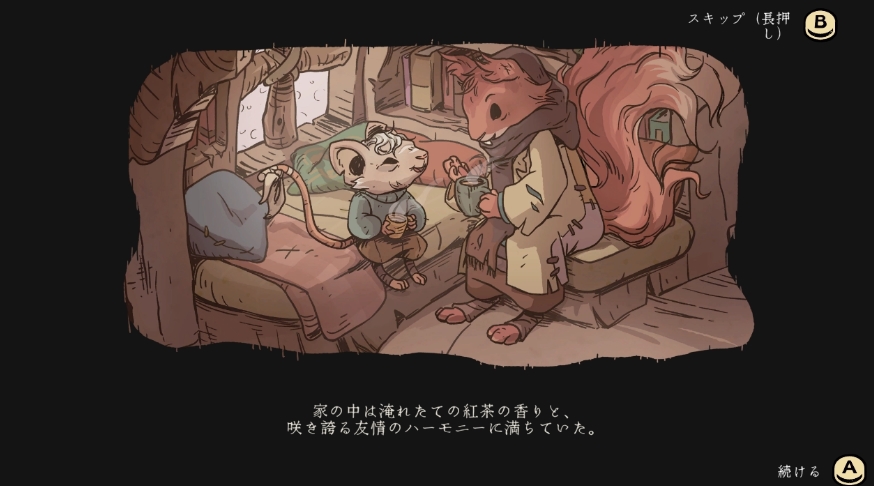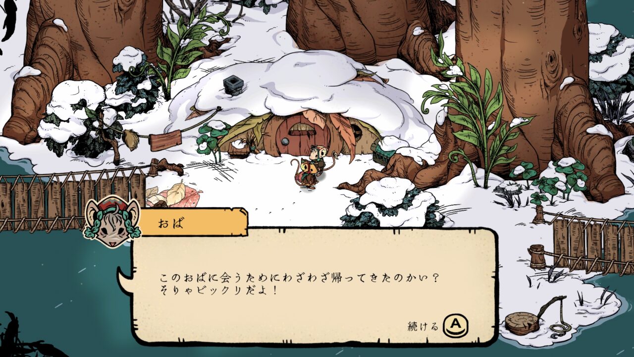 かわいいネズミの世界。しかしその見た目とは裏腹に厳しい寒さが待ち受けています。物を作って寒さを凌ぎながら、NPCたちと交流していく内容でおつかいが多いです。