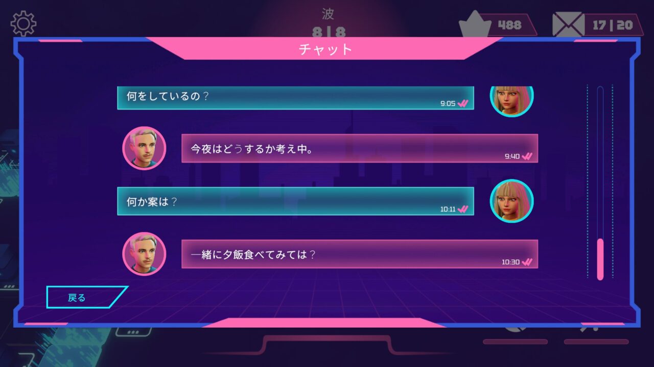 しかし大量のスパムが送られてしまい相手のメッセージが途絶えてしまう。プレイヤーは混沌とした架空世界に入り込み、恋の成就のためにスパムを撃退していきます。