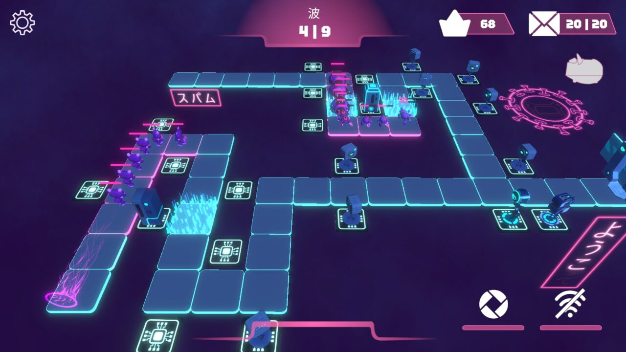 ステージは全12。ゲームの目的は 、攻めてきたスパム(敵)の群れが受信トレイ(基地)に入ってくるのを阻止すること。マークされた場所にタワーを建設し、基地を防衛します。