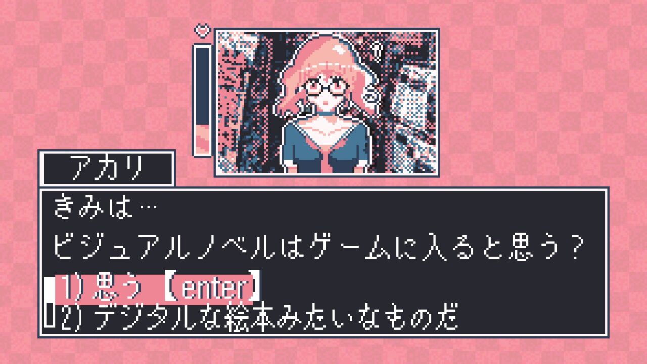 攻略ヒロインは仮想彼女「アカリ」ただ一人となっており、会話の相手もアカリのみ。