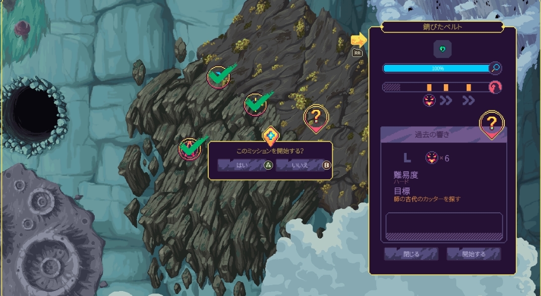 また、今作からワールドマップも導入されました。エリアごとにバイオームが変わり、採れる資源や受けられるミッションが違います。毎回どこに行くか選ぶのがちょっとだるいですが、前作よりもランの目的がハッキリしているのは良くなったと思います。