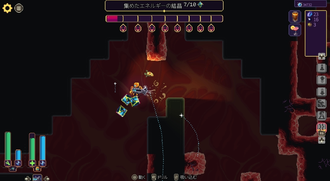 まず、採掘ゲームとして一番大事な「採掘の部分」が楽しいです。採掘用のドリルがレーザータイプで押しっぱなしでも快適に掘れます。