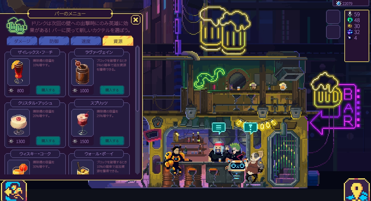 その他にも、バーで飲むと次のランでバフ効果が得られます。