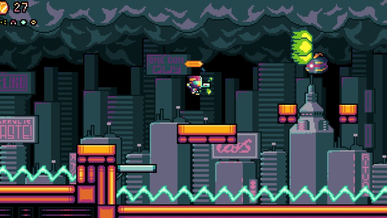 横に広がるたったひとつの巨大ステージという構成になっており、右に向かって敵や罠を突破、能力をアップグレードしながらクリアを目指します。