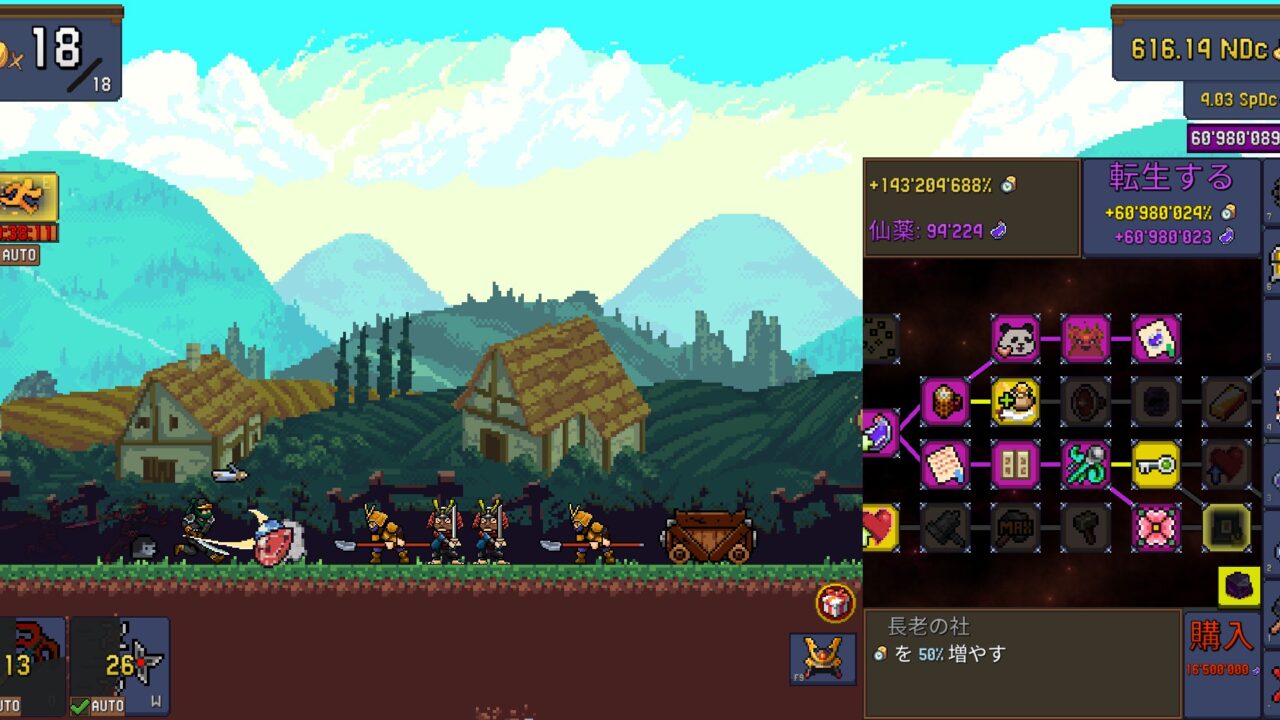 転生すると次回からの収入アップと一緒にスキルも獲得できるのですが、スキルツリーが巨大で何を獲得しようか悩む時間がとても楽しい。個人的に2ヶ月ほど遊んでみましたが未獲得のスキルがまだまだ残っていてゲームとしても序盤です。