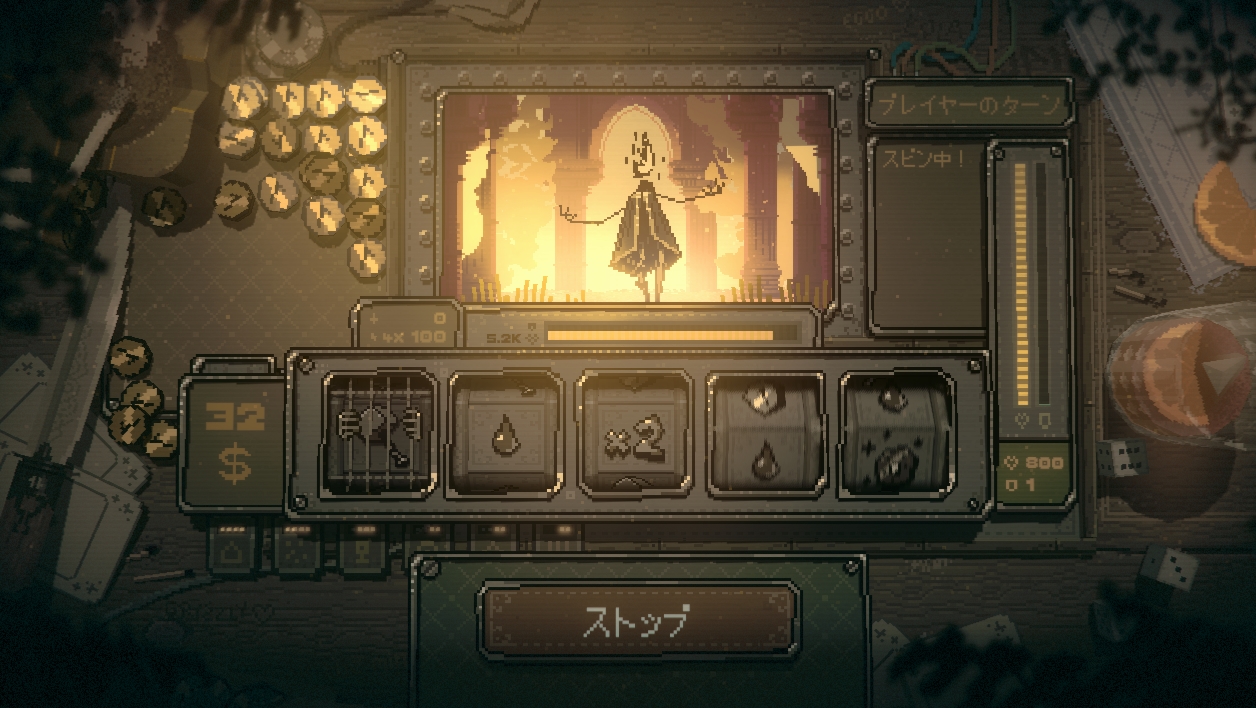 本作はそういった行動の決定にもスロットならではのランダム性があり、出目次第です。その「出目」にオリジナルの戦略性があって、運ゲーじゃないのが面白いところでした。