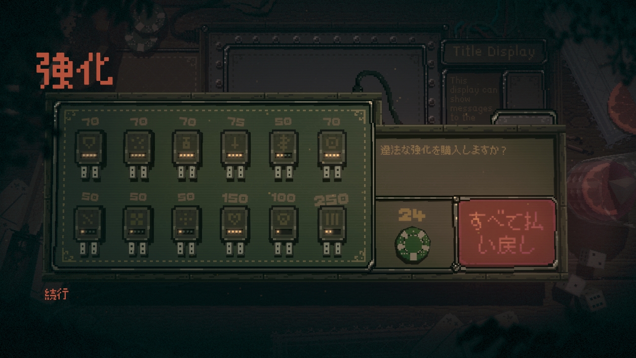 他にも売っているアイテムが色々あって、リール速度を遅くするとか、次のターンに2回リールを回すとか、思わず使いたくなるイカサマアイテムまで扱っています。