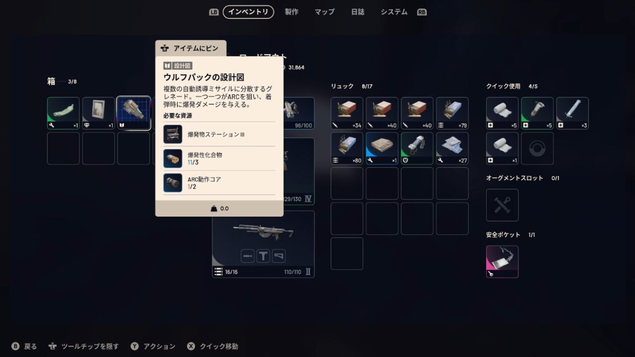 くらいだと思います。今のところ撃ち合いが発生しやすいのは、オーグメントのレア設計図が出る激熱エリア、夜襲や嵐のイベント、など限定的。それでもたまに撃たれしまうこともあって、中型のARCを倒すために良い装備を持ち込んだときとか、無料ロードアウト(ポケットなしのリュック)でたまたま良いもの拾ったときなんかはかなり緊張感がありました。