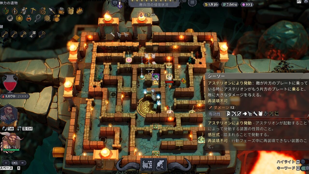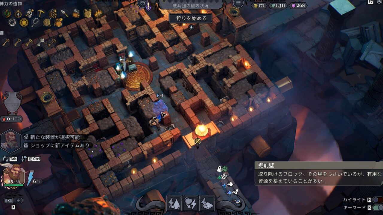 壁を作り替えられるので、敵の侵攻ルートを自在に設計できます。自作の迷宮に変えて「ここに敵を誘導したらまとめて倒せるな」みたいなニヤニヤできるポイントを作れます。